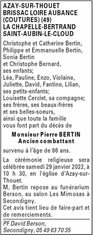 Décédé à Faye-l'Abbesse (79350, France) le jeudi 27 janvier 2022 à l'âge de 91 ans