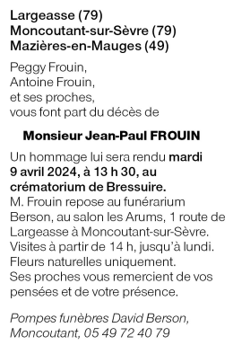 Décédé à Largeasse (79240, France) le vendredi 5 avril 2024 à l'âge de 70 ans