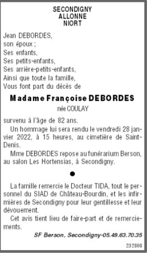 Madame Françoise DEBORDES née COULAY