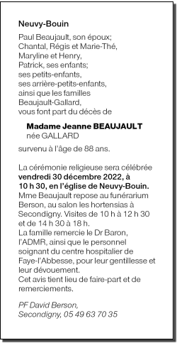 Epouse de Monsieur Paul BEAUJAULT